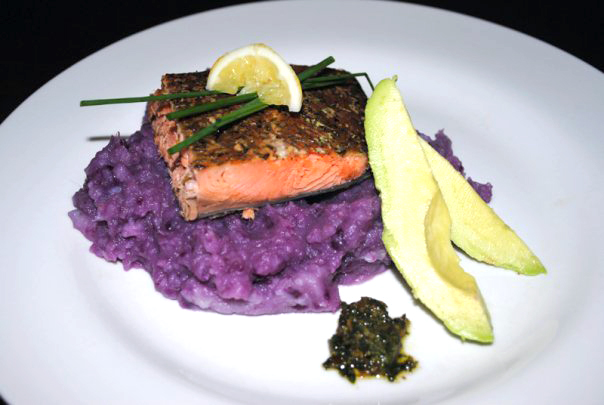 I mashed 1 purple kumara with 2 potatoes. Happy with the colour this time.