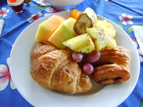 Breakfast at The Rarotongan was included with our room. Every day was a beautiful buffet spread of breads, pastries, cereal and island fruit. Heaven! We also squirreled away some bread to feed the fish.