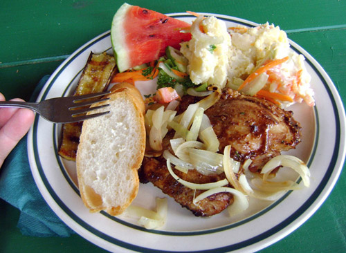 There was no fish that day so we had chicken which was grilled beautifully with a tasty marinade. It was a nice change from the seafood we were eating.