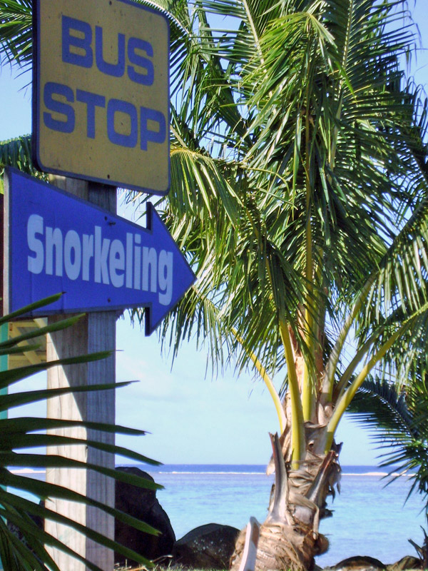 The bus in Rarotonga comes once every hour. Missed the bus? Snorkel while you wait for the next one.