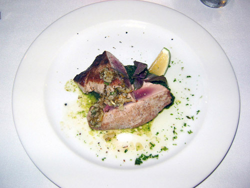 K ordered the special which was a tuna steak with scallops and a prawn skewered into it. He loved this too.