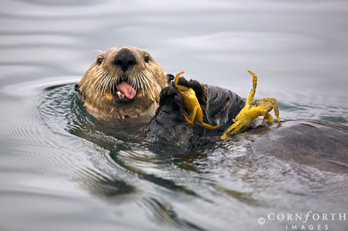 These unlikely gourmands enjoy eating abalone, mussel, crab, clams, sea urchins, prawns, squid, snails and sometimes fish. They eat 30% of their body weight so that they can keep warm. A sea otter can eat 5 to 10kg of fresh seafood daily and there is often conflict between local fishermen and sea otters. Sea otters prefer large items of food over small and have been known to completely ignore small clams if larger species are available. Since large crabs, large abalone and large sea urchins fetch higher prices than small ones, fishermen are usually chasing the same catch.