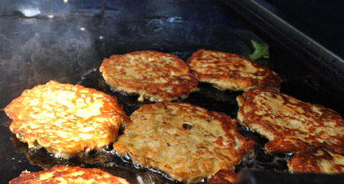Fritters being cooked.
