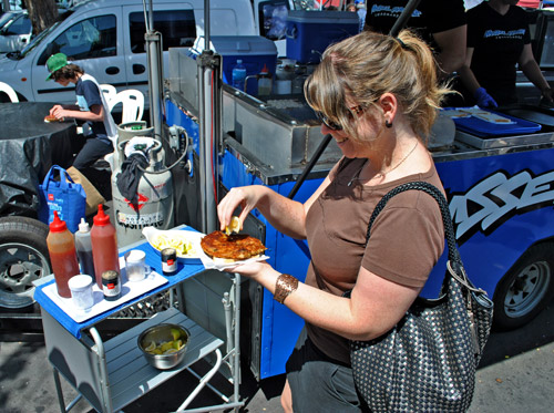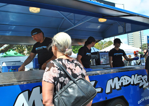 Mussel Madness offered whitebait fritters for $7 and mussel fritters for $6. Considering whitebait sells for $100 a kilo and mussels for $3 a kilo, the $1 difference seemed inadequate. I thought I was going to get to try whitebait, but it really was no surprise that they were sold out. We “settled” for mussel instead.