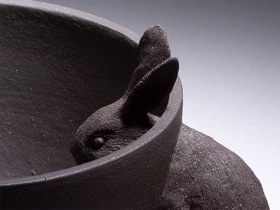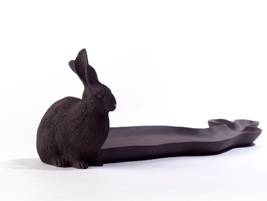 Taiwanese designer Hsia-Ying Lin has worked together with craft artisan Jun-Ching Tang on ‘Moon Rabbit’ cup and plate. Made from black clay, these tableware pieces interpret the famous chinese fairytale of the rabbit on the moon, commemorated every autumn in taiwan during the moon festival celebrations. Lin and Tang have designed a cup in which the rabbit sips the water within along the lip of the vessel; and a plate where a rabbit is found sitting on its edge,its stretched ‘reflection’ becoming the dish itself.