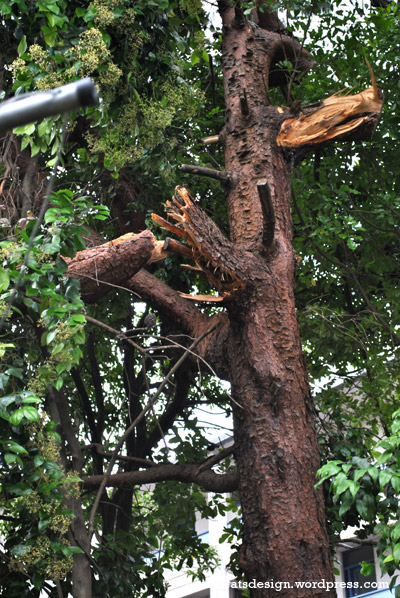 Then a week later, a second, larger branch fell. It was a perfectly still, summer afternoon and witnessed by us and our neighbours. It made a hell of a noise and the creaking branch just before the fall warned our neighbours who came over to warn us. It was kinda cool and weird to see it fall without a breeze in the air.