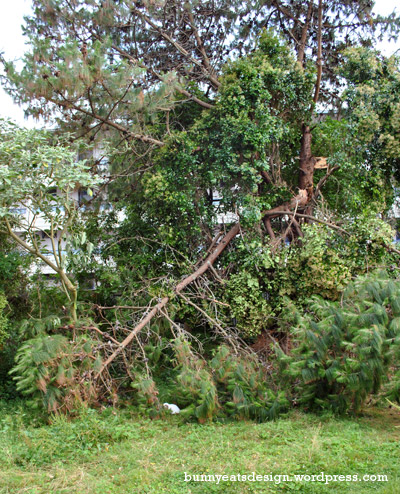 A few weeks ago, a massive pine branch fell in our backyard and obliterated our washing line. It had been really windy and the branch fell overnight.