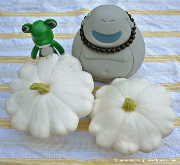 These flower petal shaped things baffled me. The frog and buddha didn’t know either so I had to ask The Googe what they might be. The Googe said they were Scallopini Squash.