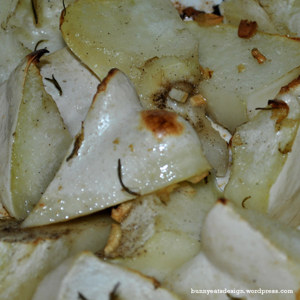 I roasted the larger of the scallopini squash in a bit of oil, garlic and fresh rosemary.