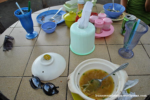 With our internal clocks all out of whack, we found dinner beside the river at a place called Gerai Kianggeh. It is kind of like an outdoor food court and at about 3pm, completely empty. $13.50 ($10.60US) got the 3 of us dinner and drinks. 3 meals. 3 drinks. Bargain!