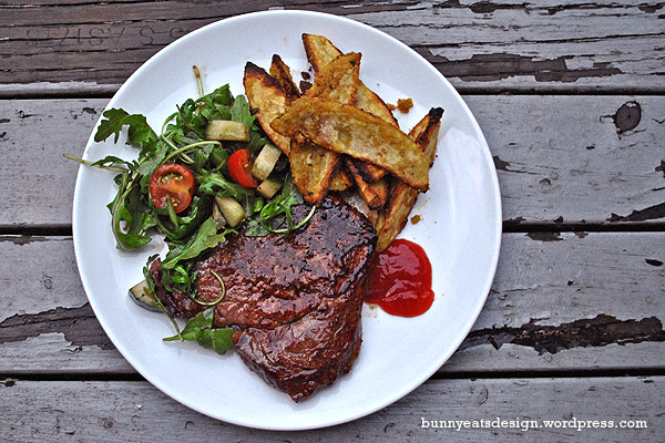 Black Rock Aged Beef Scotch Steak marinated in honey and soy sauce. Pretty self explanatory.