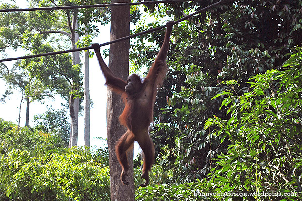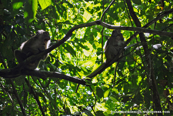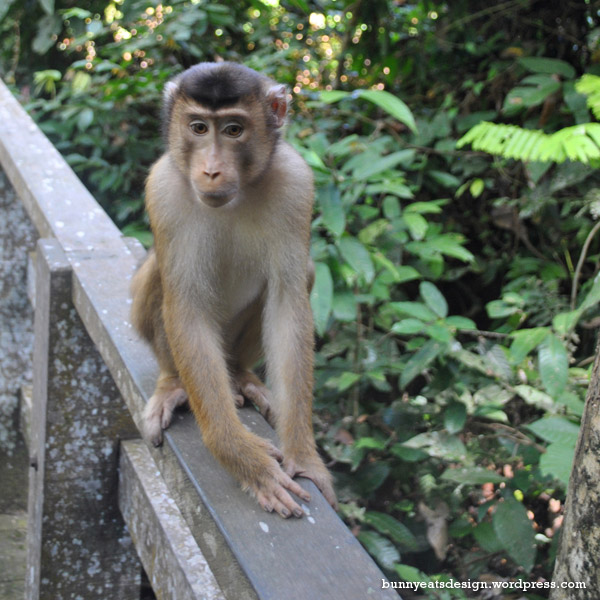 The morning feeding was packed with busloads of tourists. There was a troop of naughty macaques and some juvenile orangutans.