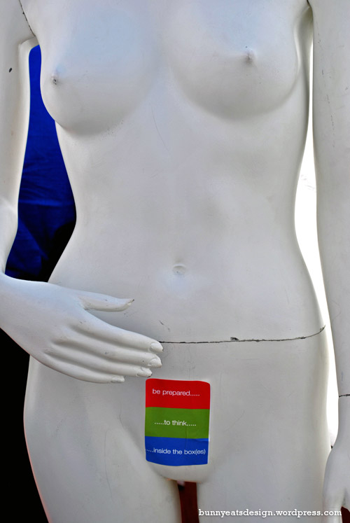 The most interactive installation of the day, but the queue to get into the booths were a bit of a turn off. Not their fault I guess! We ended up hanging around in the middle area and upstairs for ages trying to decided whether or not the queue was worth it. In the end, curiosity got the better of us. 3 coloured boxes to enter to experiment with sound, touch and sight.