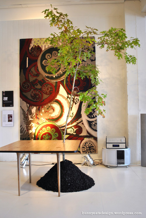 Pretty rugs, trees used as table legs, more macaroons than you can shake a stick at. Codi’s “Cardinale” rug was my favourite.