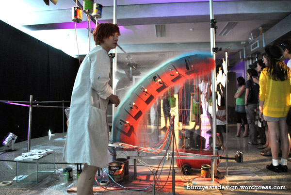 The drum theme was cool, not sure if these were put into use at Urbis Designday, but this contraption looked like metal balls fall into the middle and then onto electric drum pads.
