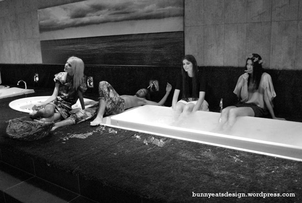 Fully clothed models dressed by Salasai in bathtubs, a huge chocolate fountain complete with marshmallows, hard boiled sweets in beautifully crafted hand basins that cost more than your car.