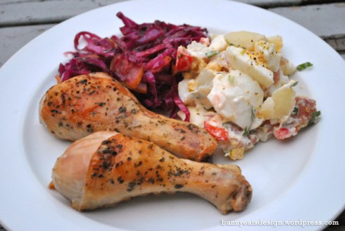 I made extra drums so that The Koala can take them to work cold and I’d heat them up in the microwave at work hot. He would have potato salad and I’d have the leftover cabbage.