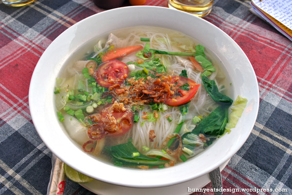 Our first meal in Vang Vieng I had a yummy mango fruit shake and a chicken lao noodle soup and The Koala got a a bbq mix grill.