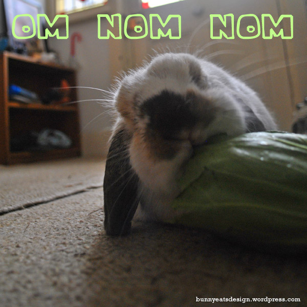 The bunny likes his bok choy.