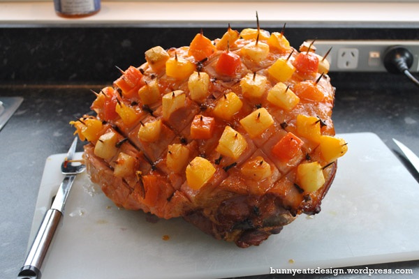The Koala’s Mum had sourced a ham for our family lunch. She provided everything and I did the honours of decorating and glazing. Using tropical fruit, cloves and an apricot sauce for a glaze, this ham provided many yummy meals over the weekend. We even made crackling with the ham skin.