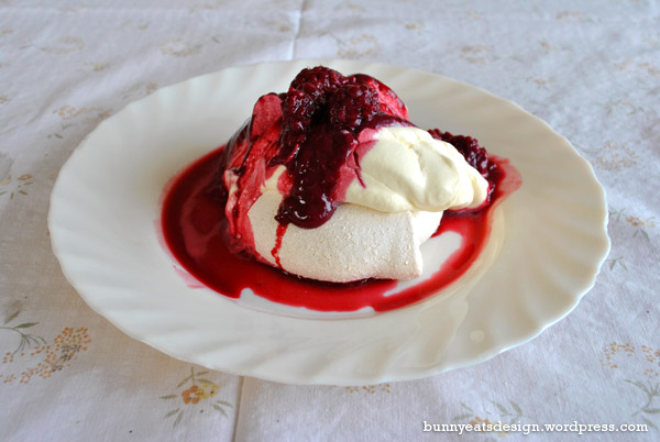 The ham was paired with a greek salad, peas, roast potatoes and pumpkin. Easter lunch was finished off with Mum’s individual pavlovas with berry compote and whipped cream. Yum!