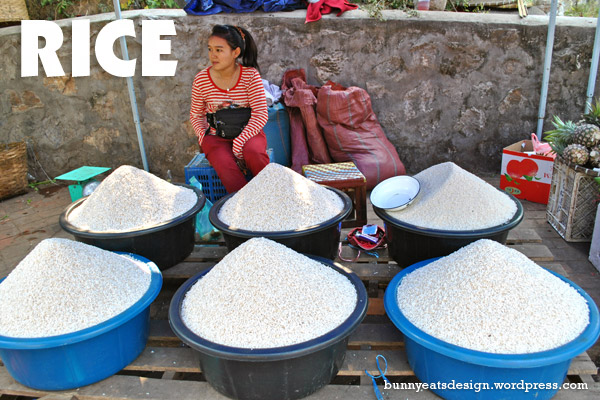Big tubs of different kinds of rice. I love rice! They eat both steamed rice and sticky rice in Laos.