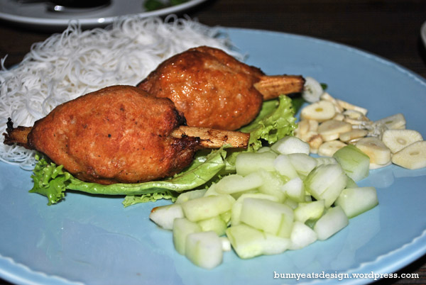 …is no frills. You come here to eat. We picked one of their set meals. Great value at only 160 baht. Sometimes it’s nice to let someone else choose your dishes. Set 6 came with Shrimp mousse on sugar cane sticks, Pork with betel leaf, Rice cakes with pork floss and shrimp, steamed pork sausage, a big serving of herbs which came with free refills. We didn’t really know what we were doing when it came to the herbs.
