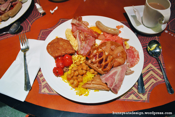 Breakfast at any of The Venetian restaurants was included with our suite so we picked the buffet option at Cafe Deco Macao. My breakfast was a croissant, a strawberry danish, smoked salmon, sausage, salami, ham, samosa, curried rice, chickpeas, corn, tomatoes, mushrooms, hashbrown, scrambled eggs, bacon, fried egg. I sampled about 10% of the breakfast dishes on offer. There were breakfast foods from many different cuisines including Chinese, Japanese and Indian. The buffet station stretched around the edge of this 32,000 ft² dining area and it’s possible to get lost on your way back to your table. I know this because I got lost!
