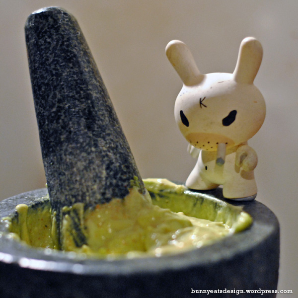 I had a ripe avocado and I figured it was time I used my mortar and pestle for something other than grinding salt and spices.