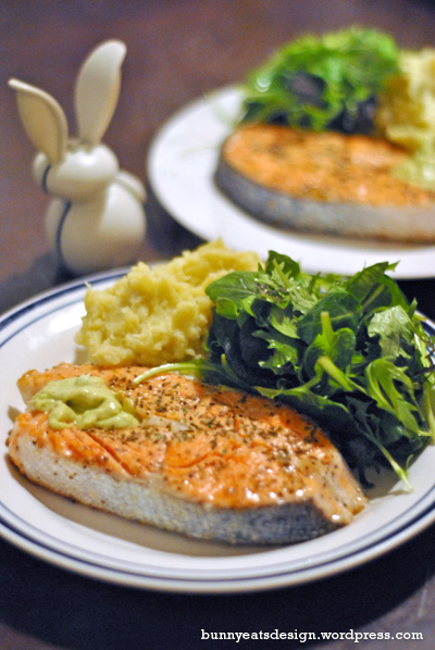 A big dollop of guac went well with our salmon dinner. Salmon makes my world rosy.