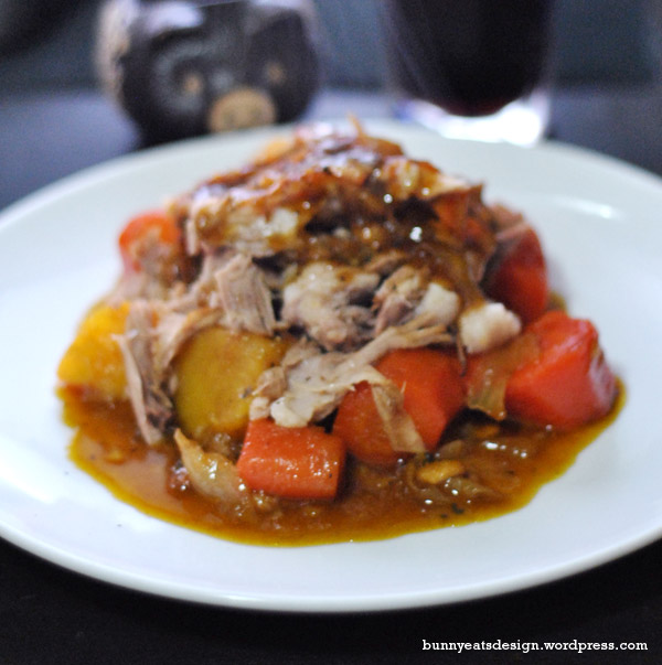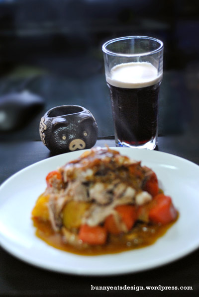 I had a large pork shank in the freezer, waiting for it’s time to shine so I summoned it on a cold winter evening. I started this a few minutes after 5pm and it took close to 3 hours to make. So it’s not the one if you want to eat fast. But if you have a few things to do and can wait for an amazing dinner, this could be the one. We had a big can of Guinness on the side of this. The sauce is sweet, flavoursome and very rich. Make it for someone you love.