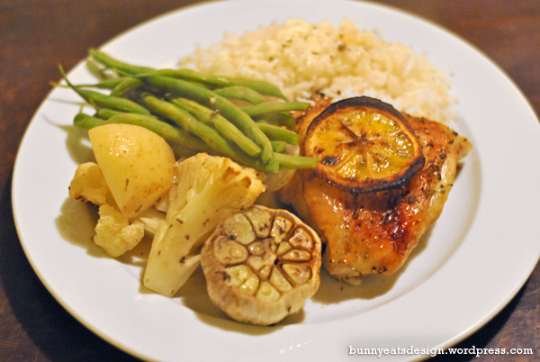 Rice and roast!!!! But… it makes perfect sense. If I had to pick only one starch to eat for the rest of my life, it’d be rice… so I’ll have to try this the next time I roast some chicken. (by the way, very jealous of your homegrown lemons – they look gorgeous sliced on top of the chicken)