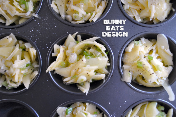 - Spoon into a well greased muffin tin. Top with a sprinkling of salt and pepper.