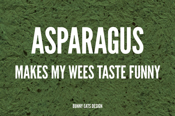 I give it a whirl about once a year just to make sure I still feel the same way. I haven’t had my yearly tasting yet. Who knows? Maybe since I’ve started blogging I have developed my taste buds…for asparagus rather, not wees!
