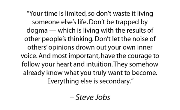 I leave you with some of my favourite quotes from Steve Jobs. Set in the font Myriad (of course).