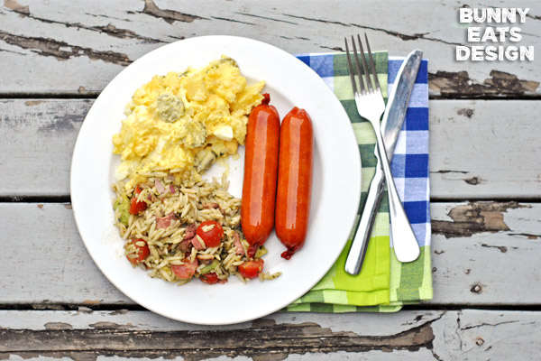 Served with some smokey chicken kranskys and a creamy, mustardy potato, egg and gherkin salad.