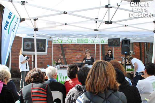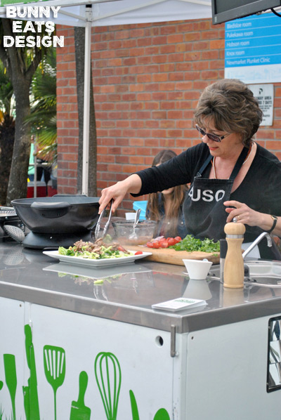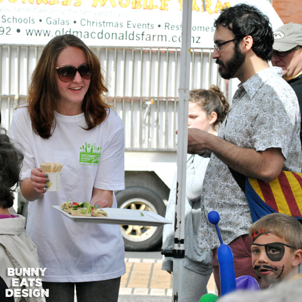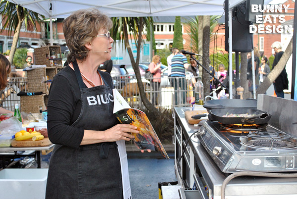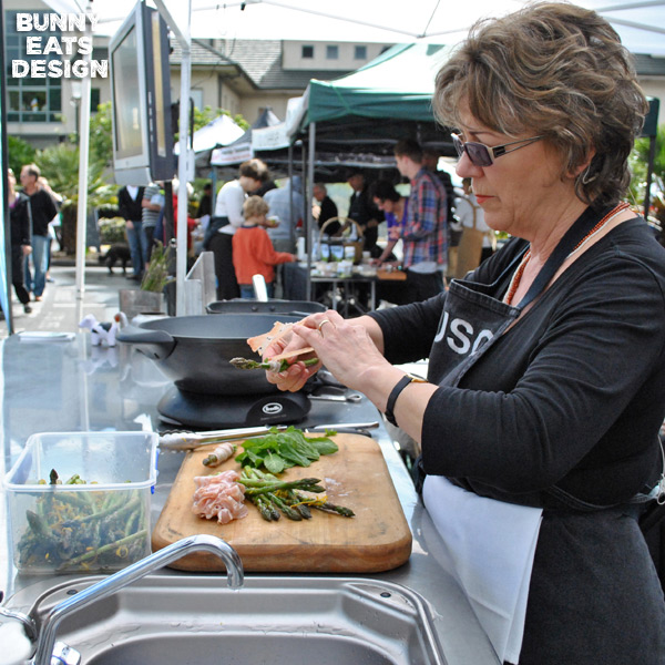 On a beautiful Saturday morning, Parnell Farmers’ Market celebrated their “Hello Spring” event with face painting, Walnut the clown (making super balloon animal hats), Old Macdonald’s barnyard petting zoo and the main course: Julie Biuso’s Out Standing In Their Fields cooking demo.