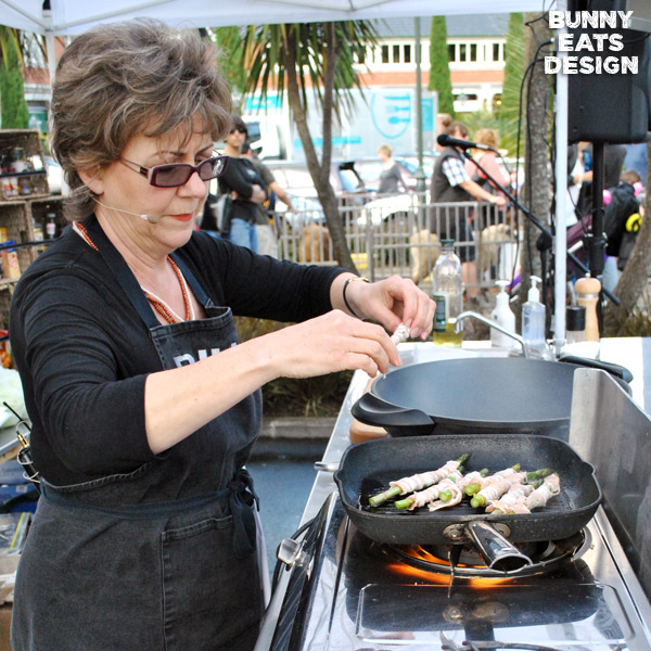 The second dish was asparagus, mint and bacon wraps cooked quickly on the BBQ. This is a summertime snack that has wide appeal. Perfect as a pre-dinner nibble with a summery sauvignon blanc or perhaps an icy beer. This recipe can be found on her website www.juliebiuso.com.