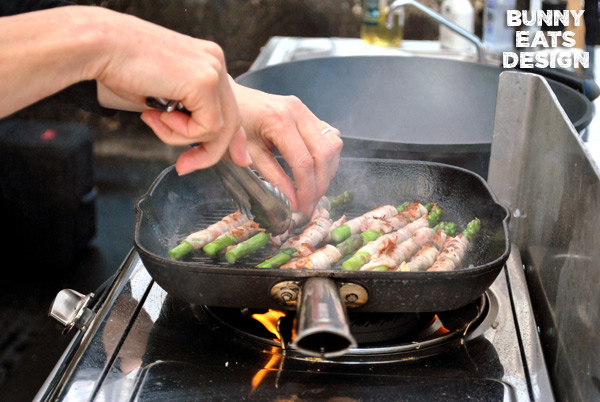 Julie wrapping asparagus spears