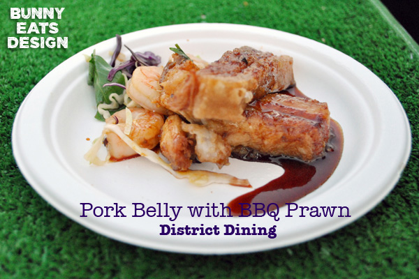 Black vinegar glazed pork belly with bbq prawn. District Dining – 10 Crowns