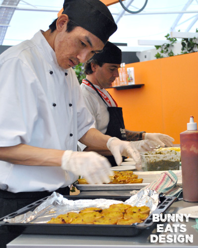The chefs. What troopers! Nosey food gawkers watching and photographing, poking into their open kitchens all day long, 7 days a week. Here are a bunch of beer braised beef & honey kumara pie with macadamia crumb being prepared.
