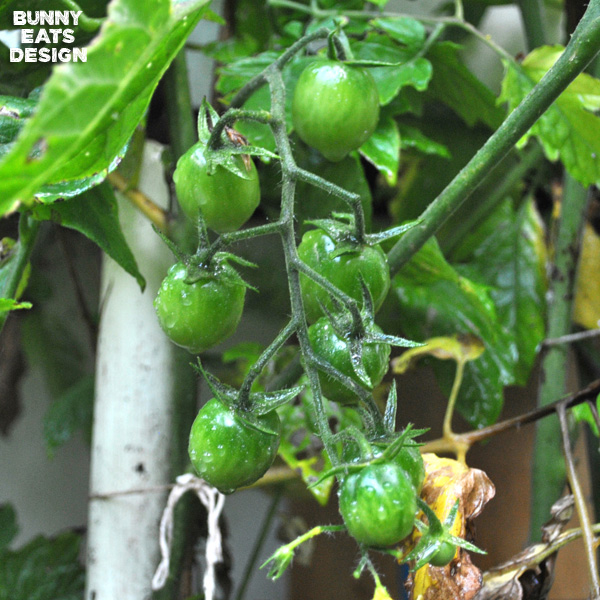 I ate my first garden strawberry this week (we planted 2 varieties) and I’m getting excited at the prospect of our tomatoes. They’re a still green at the moment, but you can tell they’re going to be all different.