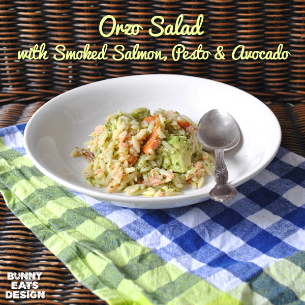 Orzo Salad with smoked salmon, pesto and avocado