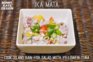 I made a decadent version with yellowfin tuna instead of your average white fish. No regrets. So delicious and so easy, though it is possible I made too much. I have never overindulged in Ika Mata. What a complaint. Half a kilo of raw tuna will stuff 3 people to the gills. I should make this again sometime in a smaller quantity or perhaps share with with more friends.