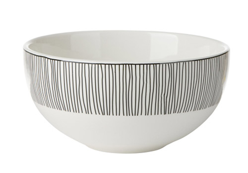 This pinstripe collection available at Stevens made of square dots originating from a central point remind me of crosscut logs of wood. The black and white print is very striking and would look fantastic on a black or white table setting. At $3NZ a piece, they are also the cheapest of all the pieces I found. A set of 6 bowls and 6 plates would set you back just $36NZ.