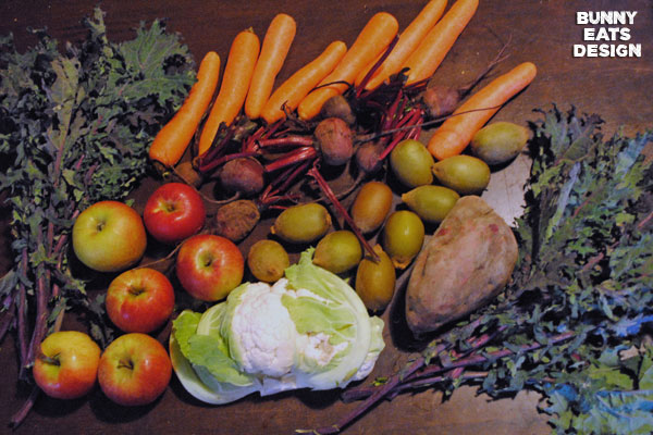 To get more efficient in our grocery shops this winter, we are replacing the 2 to 3 trips per week to the market, with a weekly CSA delivery of fruit and vegetables. I plan on topping this up with a fortnightly trip to (or maybe even delivery from) traditional supermarket and a fortnightly trip to Nosh (a local gourmet food store). Local CSA project OOOOBY has a great concept and ethic and we are in week 2 of our subscription.