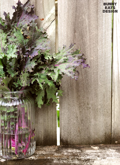 Essentially having someone else do your shopping based on what is in season means that you get to try things you might not normally buy. While I’d love for there to be more exotic items for me to puzzle over, I’m sure that others don’t feel the same. Each week there’s been one or two items that I wouldn’t usually buy and the rest are all considered “safe”. Easy enough to handle. The weirdest things I got each week were red russian kale (pictured above), red skinned turnip and kaffir lime leaves.