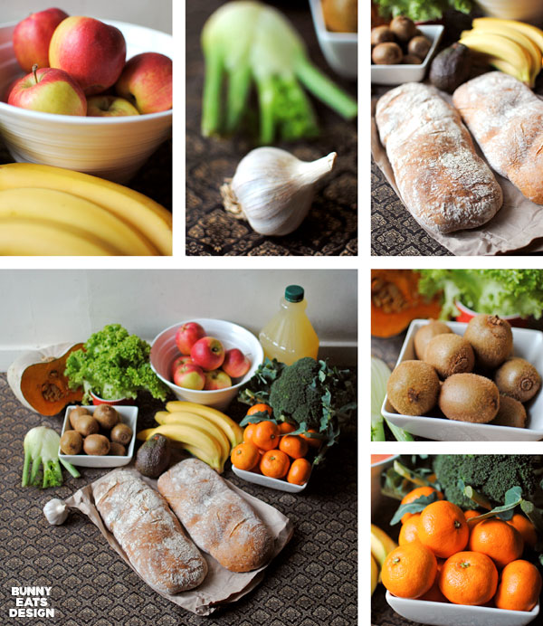 This week, cooking at home with our CSA box, we’re having grilled haloumi, french toast, salad, burgers, quesadillas a pasta dish, a soup and even a smoothie. Very much inspired by a stock standard cafe board.