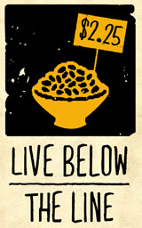 Awesome, love your post on living below the line…You did a great job at making it look do-able and the food looked interesting – and delicious! We tried a feed a family of 4 for $5 – its ok every now and then but to continue this way, would be tough! Congrats on the $$$ you raised
