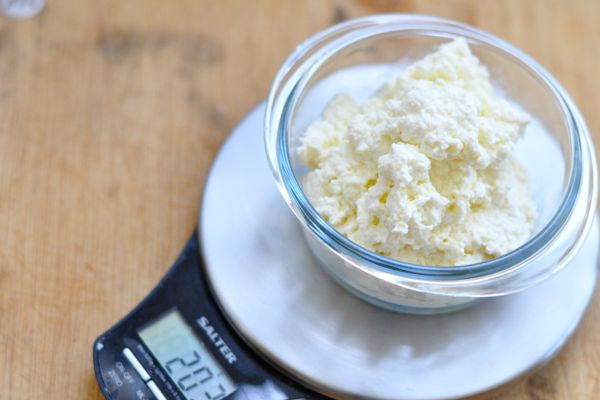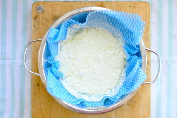Ricotta is super easy to make and there is something very satisfying about knowing you made this delicious, creamy versatile cheese yourself. The only drawback is the fact that it takes quite a lot of milk to yield a substantial amount, and you have a lot of whey left in the bowl. Whey is, in fact, incredibly high in protein and nutrients and quite versatile (including useful in home-made beauty treatments if you don’t mind smelling like baby vom) but I chucked it out.